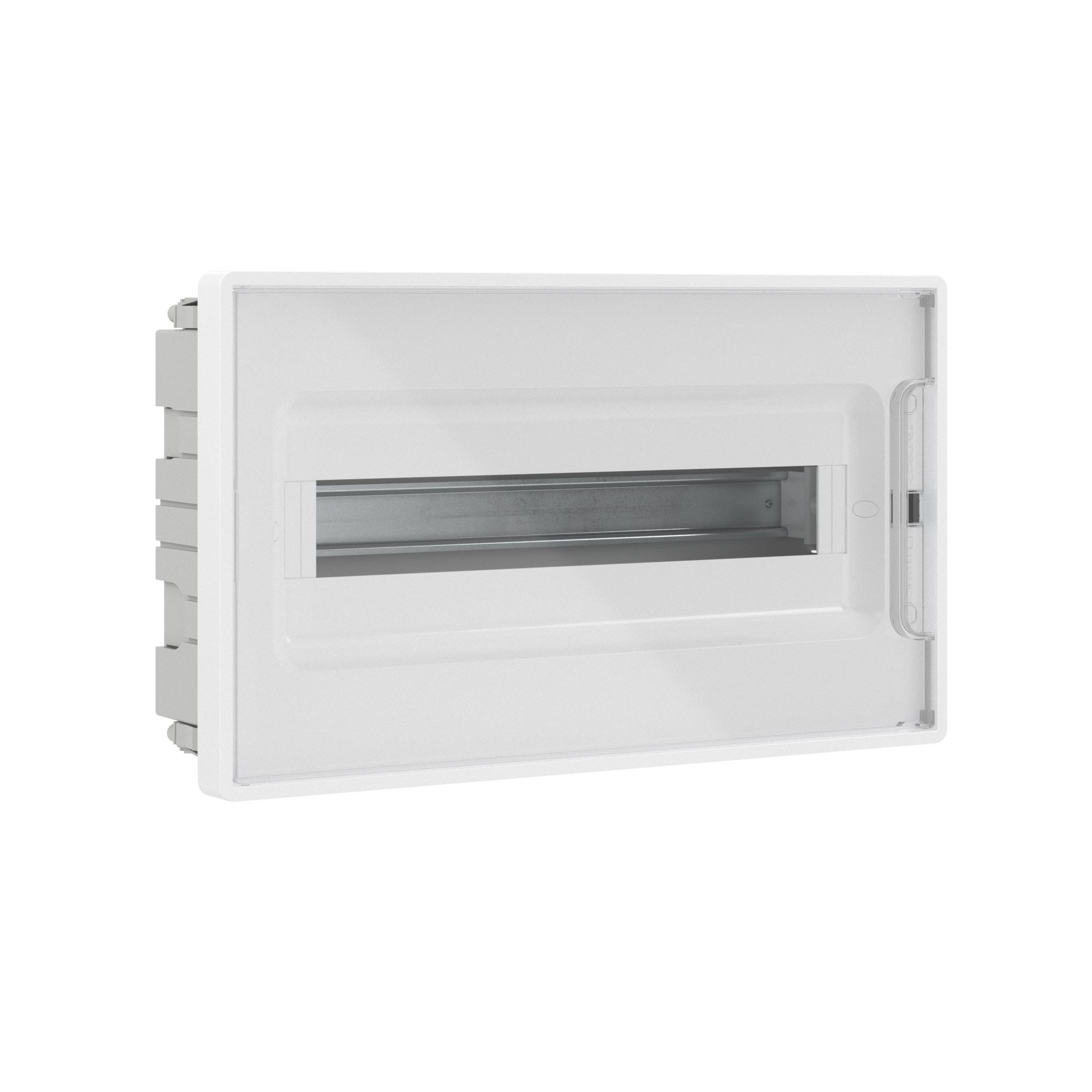 Щиток 18 модулей встраиваемый FRAME,белый, с прозрачной дверцей, с 2 шинами PEN на 8 и 10 отверстий.